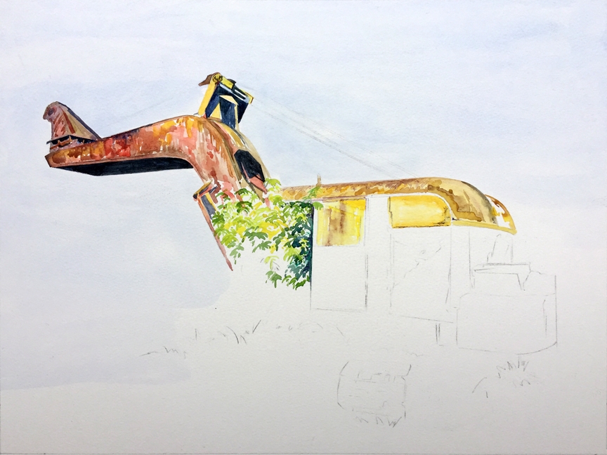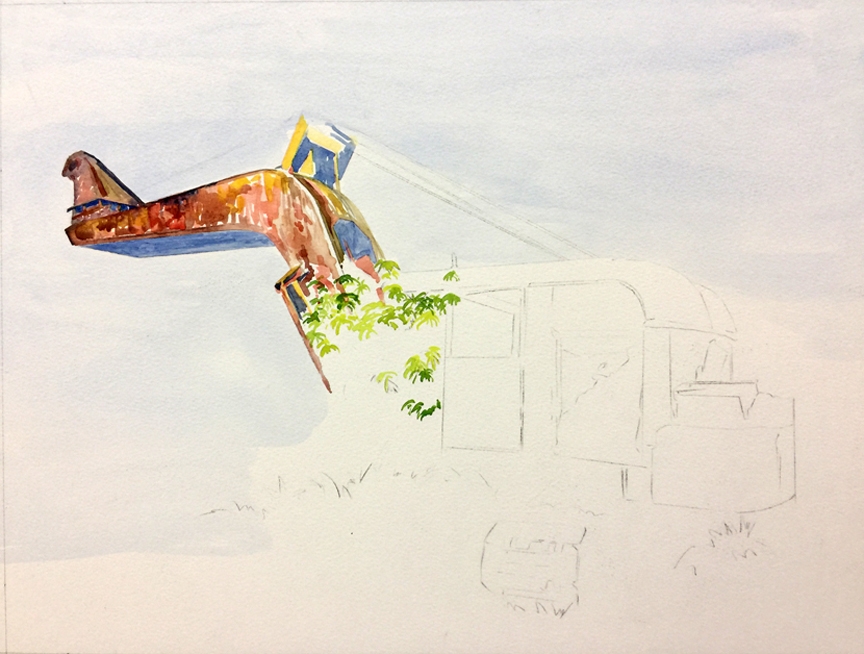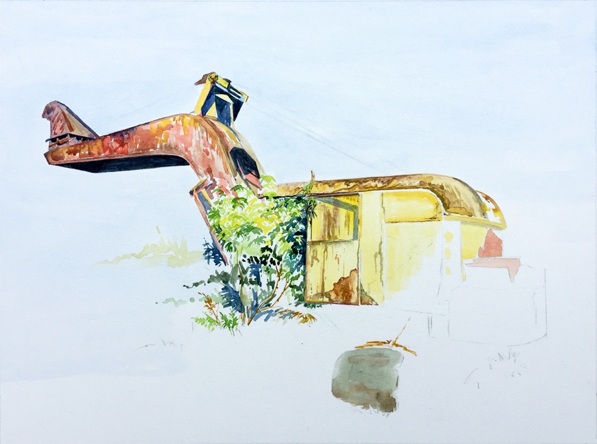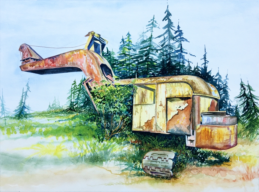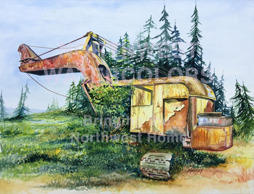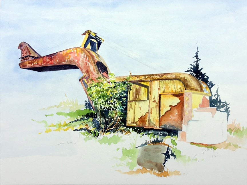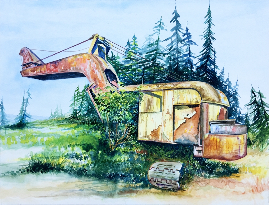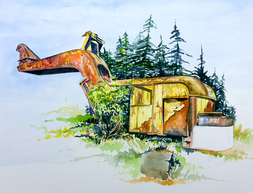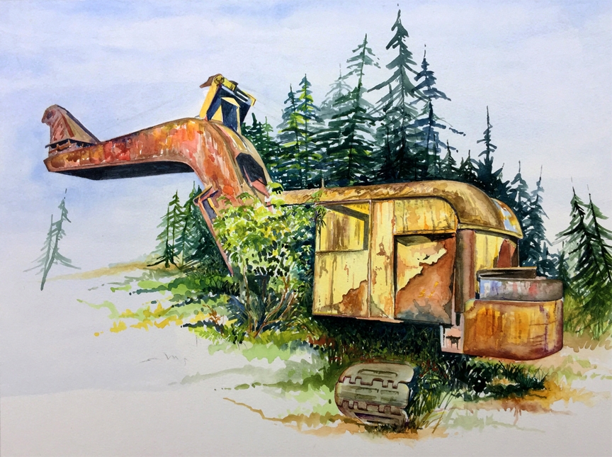 On the property there are several old antique logging machines resting and rusting gently in the vegetation. Below is my latest work of one of the machines, painted from a photograph I took. Sorry for the watermark. Enjoy!